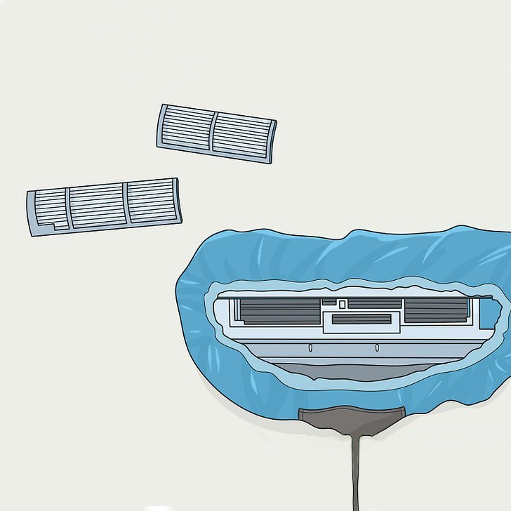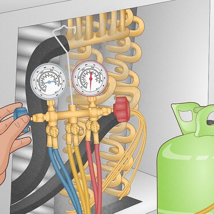 - Чистка конденсатора наружного блока мойкой высокого давления